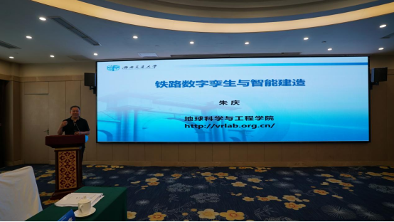 转型发展行业之需,时代之势。本次大会邀请到西南交通大学学术委员会副主任朱庆教授作学术报告。朱教授以团队在川藏铁路项目中开发的全生命周期管理系统为范例,结合测绘地理信息的角色定位,勾勒出测绘地理信息行业的转型发展之路,为与会嘉宾送上“饕餮大餐”。朱教授以“1+4”的框架体系,指明了测绘地理信息行业的新长征。“1”指测绘地理信息行业要与实体业务融合,就是要以数字赋能实体,或者说从实践中升华理论;“4”指四个方面的结合融合,即与各类数字融合、与前沿科技融合、与具体工程全生命周期结合融合、与各类创新创造结合融合。朱教授情真意切告诉大家:川藏铁路要按习近平主席最高指示,建成世界独一无二的智慧绿色铁路;也语重心长勉励大家:测绘行业到了转型升级紧要关头,时代需要、祖国需要、人类需要,希望大家不负时代、不辱使命,力争把西部测绘行业建设成为世界第一的测绘大家庭、大产业、生力军,充满活力的动力源!